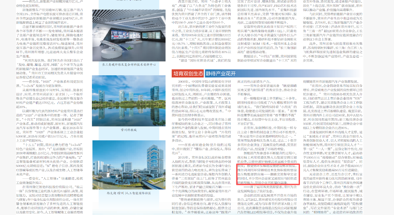 On March 16, China Securities Journal published a full-page in-depth special report on the high-quality industrial development of Changzhou. The article fully recognized the "Changzhou Model" and "Changzhou Strength" underpinning the city’s evolution from an "Industrial Star City" to an "International Intelligent Manufacturing City". As a core pillar of Changzhou’s industrial transformation in this journey, WELLE Group has leveraged its decades of technical expertise and profound industry heritage in the environmental protection sector to execute a strategic transformation into the bioenergy field, delivering shared high-quality industrial development outcomes for both the enterprise and the city.