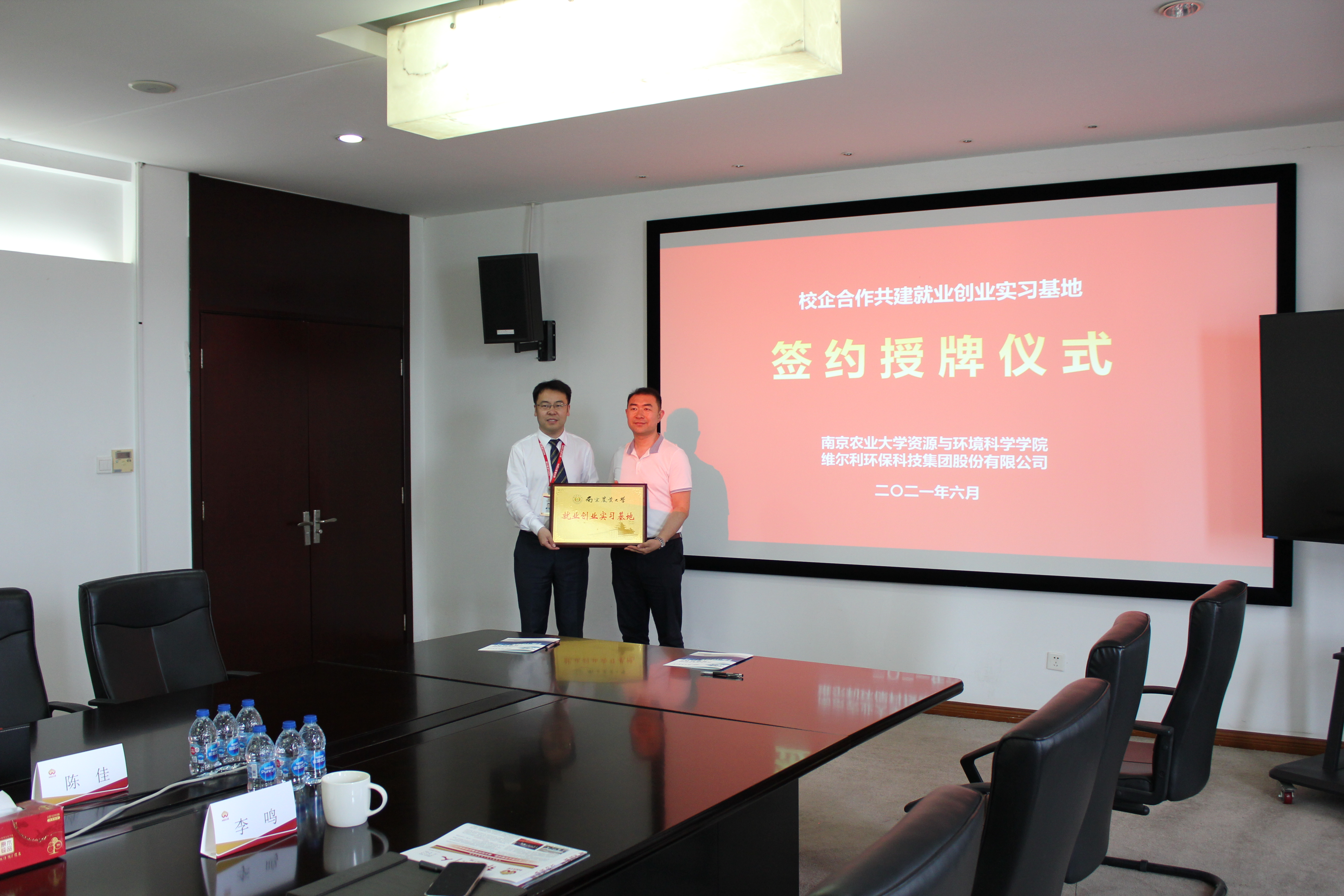 閆相偉副書記介紹了學院總體發展概況及人才培養創新舉措,就如何深化兩家單位的共建合作提出了建議,并表示學院將依托自身科研優勢,搭建學校與企業之間人才和技術對接的橋梁。最后,維爾利集團與南京農業大學就共建“就業創業實習基地”簽署了合作協議,并舉行了簽約授牌儀式。未來維爾利集團將攜手南京農業大學,通過校企合作,在為大學生提供就業創業平臺的同時,也為企業打造了優先引進環保創新人才和技術的渠道。